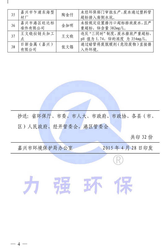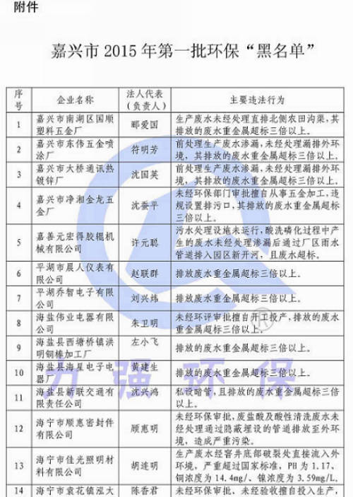 嘉興市環(huán)境保護(hù)局關(guān)于嘉興市2015年第一批環(huán)保“黑名單”的通報