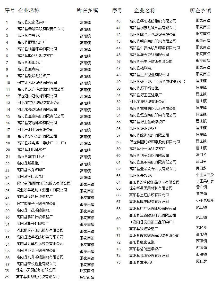 緊急通知:河北高陽全縣染廠停產(chǎn)至12月31日