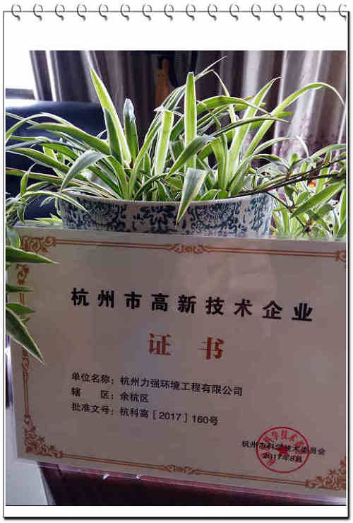 力強環(huán)保榮獲杭州市高新技術(shù)企業(yè)證書