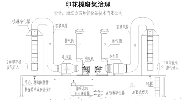 印花機(jī)廢氣治理系統(tǒng)立面布置示意圖