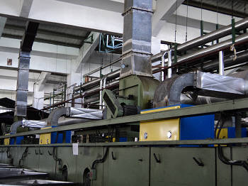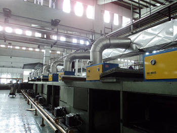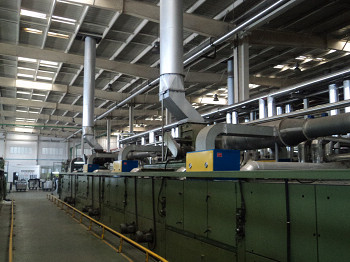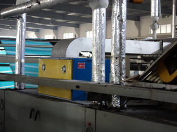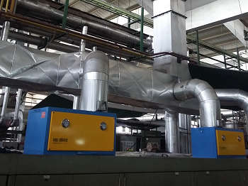 從排放的廢熱氣體中回收熱能(回收熱能≠回收廢氣),用于加熱新鮮空氣,加熱后的新空氣再返入定型機烘箱內(nèi),從而實現(xiàn)節(jié)能之目的。