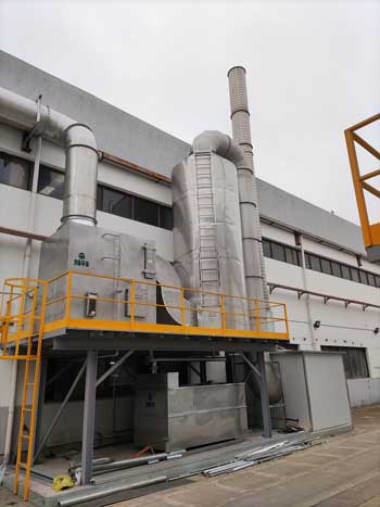 其中熔煉爐廢氣成分主要為顆粒物和VOCs揮發(fā)性有機(jī)物,其治理工藝采用“噴淋+高壓靜電”兩級處理。